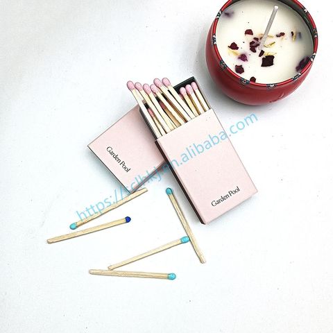 Venta al por mayor de fábrica, cerillas de madera de primera calidad, caja de Color con logotipo personalizado de 3 pulgadas, embalaje de velas coloridas, cerillas de Hotel